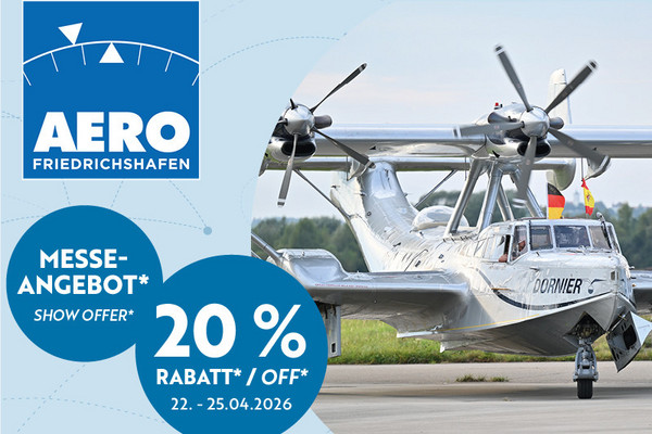 Vom 22. - 25. April 2026 findet in Friedrichshafen die Weltleitmesse AERO für den Bereich General Aviation statt. Alle AERO-Besucher erhalten während der Messe 20% Rabatt auf das Museumsticket.