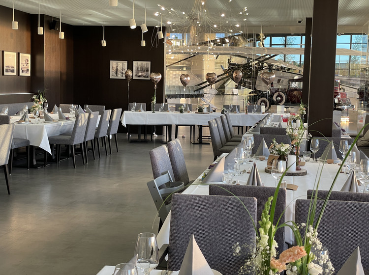 An Ihrem Hochzeitstag möchten Sie Ihre liebsten Menschen um sich haben, ohne Kompromisse bei der Gästeliste machen zu müssen. Egal, ob Sie eine kleine, intime Feier oder ein großes Fest planen: Bei uns finden Sie die perfekte Hochzeitslocation am Bodensee für Ihre Hochzeitsfeier. Unsere vielfältigen Locationmöglichkeiten schaffen den idealen Rahmen für Ihre märchenhafte Hochzeit. Ob Sie eine kleine Feier im Do-X Restaurant planen oder den flexibel gestaltbaren Flugzeughangar nutzen möchten – alle unsere Locations lassen sich perfekt an Ihre Gästezahl anpassen. Mit einer Terrasse, die einen atemberaubenden Blick auf den Zeppelin Start- und Landeplatz sowie das Rollfeld des Flughafens bietet, wird jede Hochzeitsfeier bei uns zu einem unvergesslichen Erlebnis..